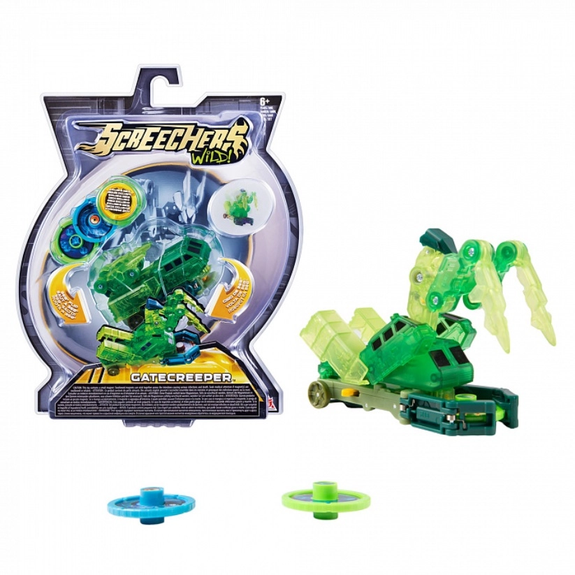 Настало время показать, на что ты способен! Пора стать крутым скричером и участвовать в настоящих скричер-баттлах! Скричер Гейткрипер превращается в богомола. Машинка ловит диск, подпрыгивает, делает умопомрачительный кувырок и трансформируется прямо в воздухе. В комплекте входят 3 коллекционных диска для мгновенной трансформации. Внимание! Возможны 2 варианта упаковки.
